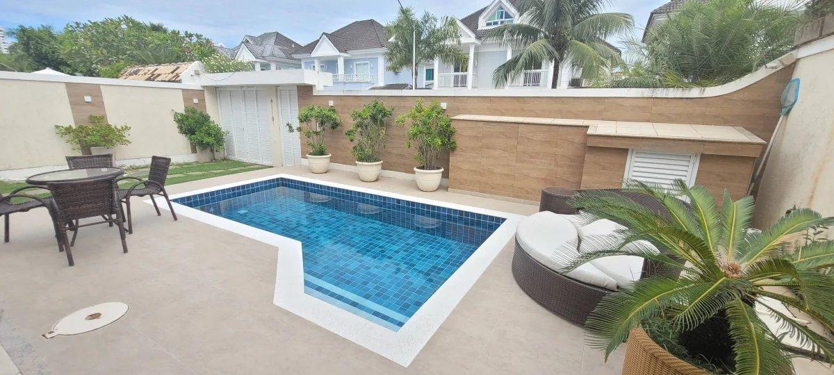 O imóvel está situado em condomínio fechado, com segurança 24 horas, em rua tranquila e muito bem localizada, entre a Barra e o Recreio.